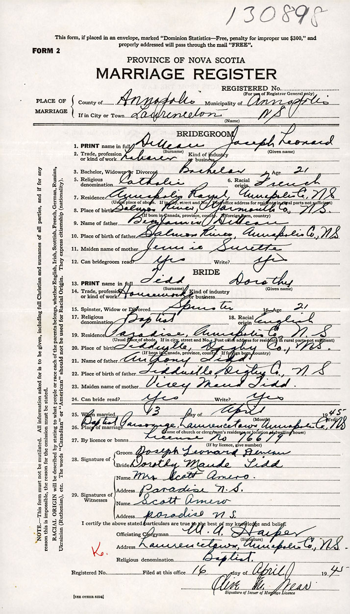 Groom Joseph Leonard Deveau
