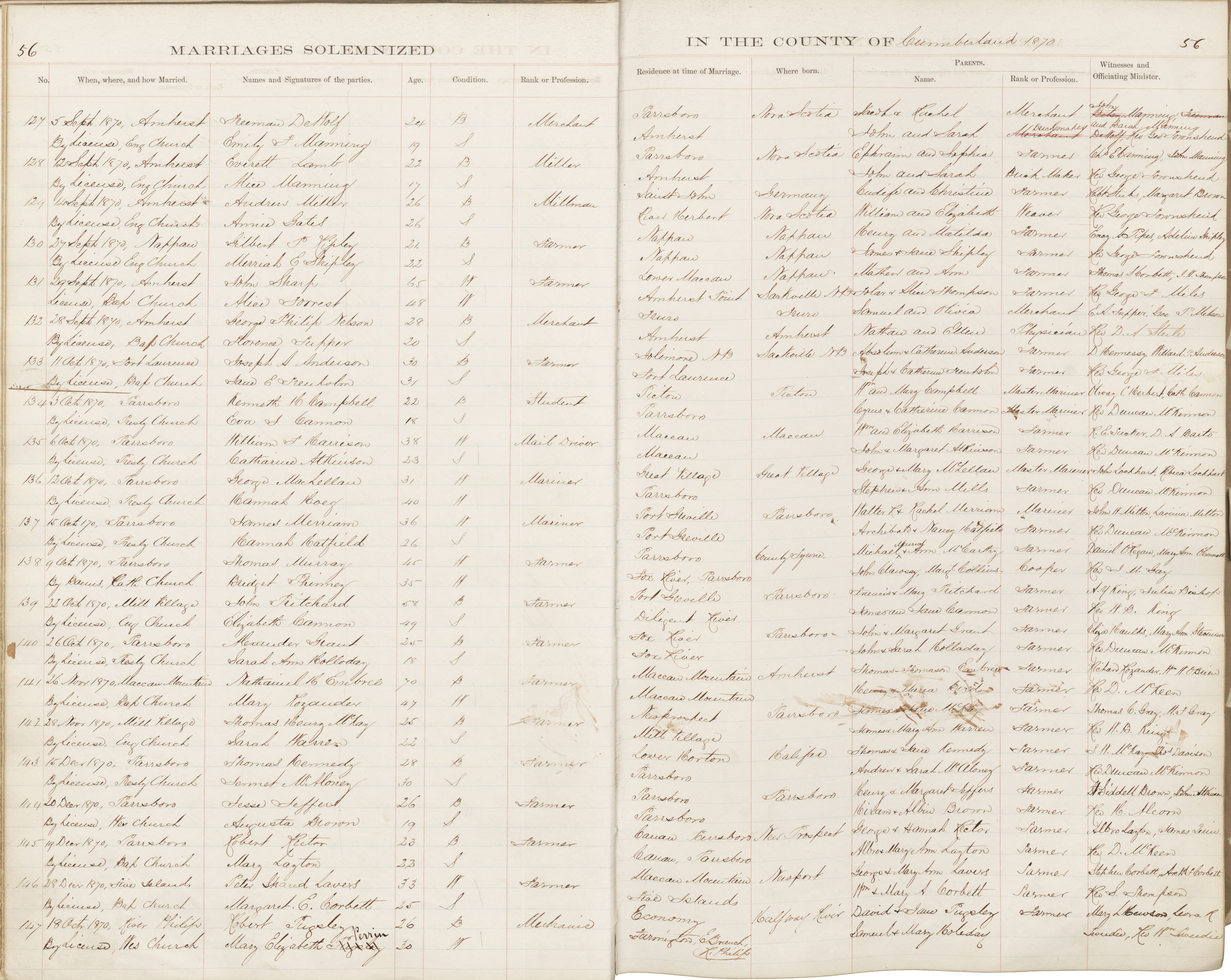 Registration: Year: 1870 book: 1809 page: 56 number: 127