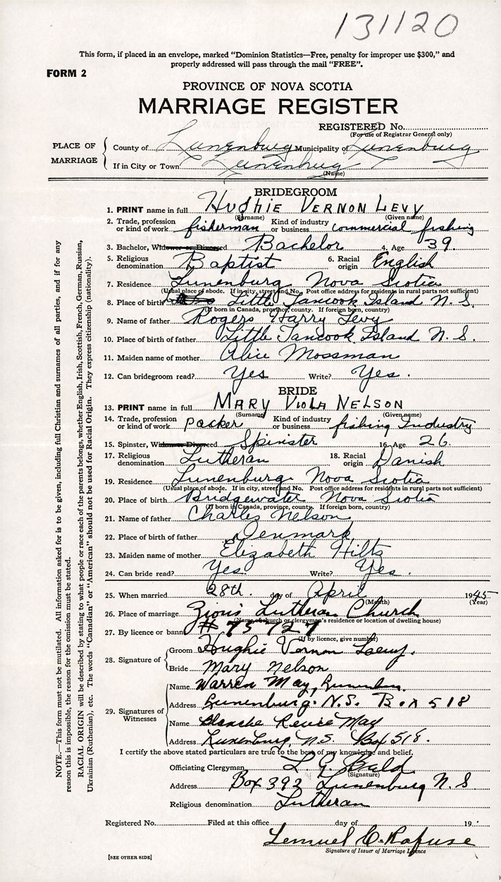 8. Place of birth Little Tancook Island