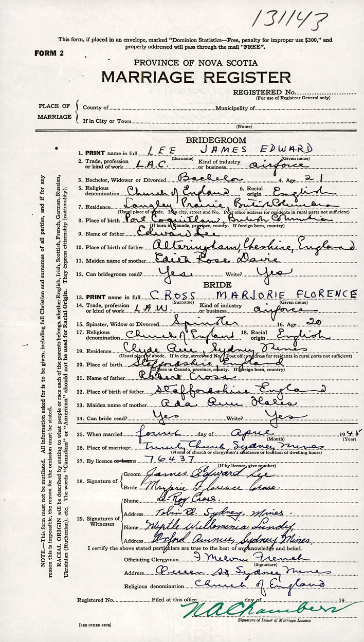 26. Place of marriage Trinity Church Sydney Mines , Cape Breton County