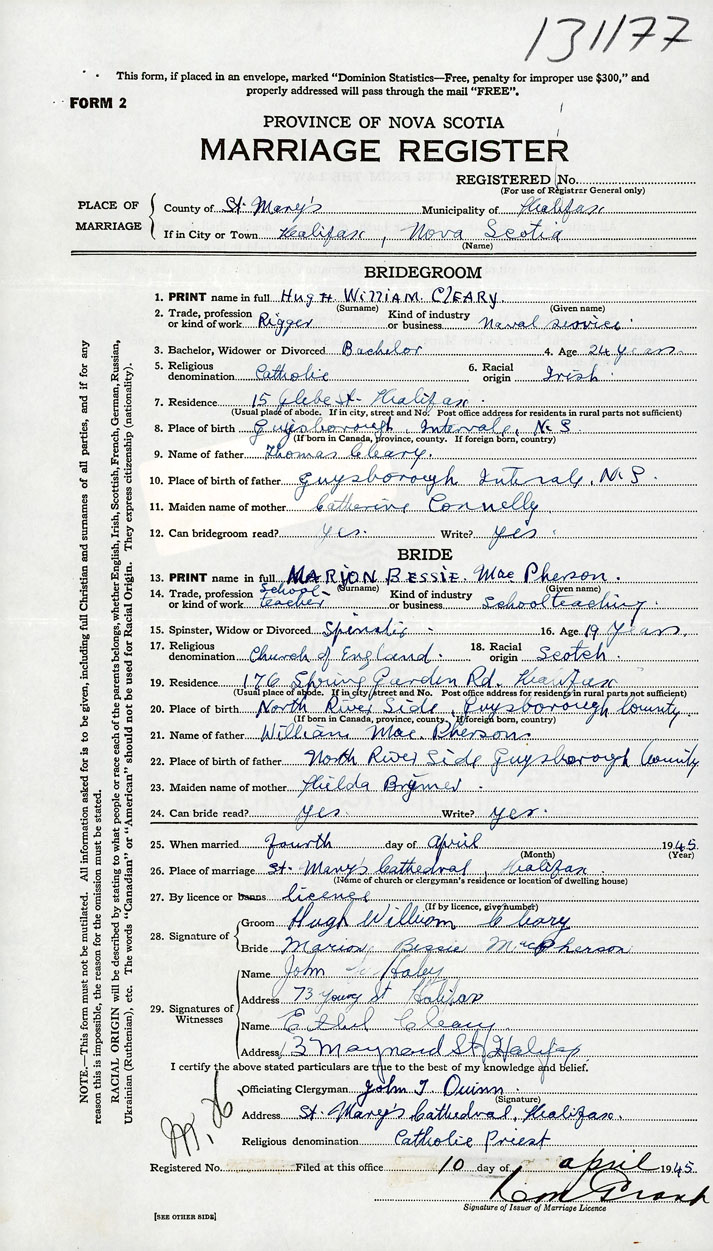 26. Place of marriage St Mary's Cathedral Halifax, Halifax County