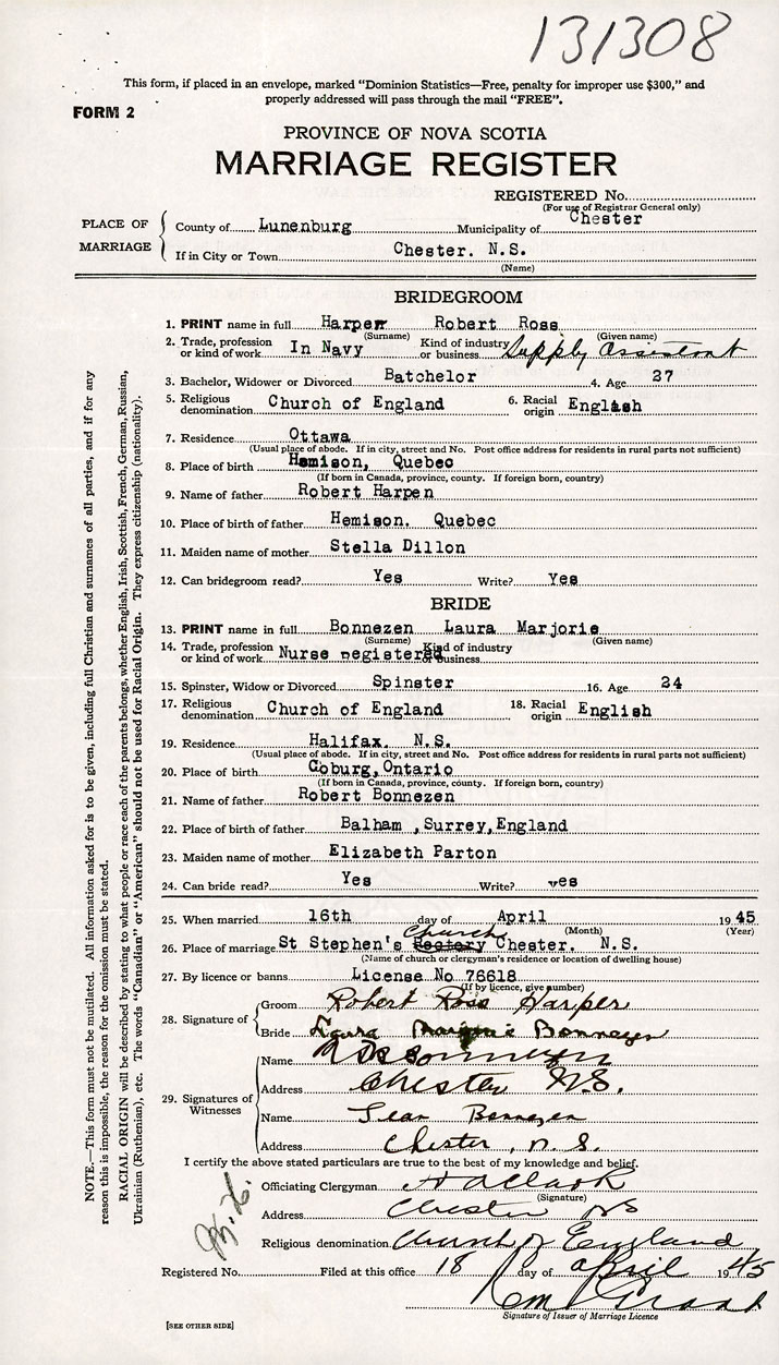 26. Place of marriage St. Stephen's Church Chester, Lunenburg County