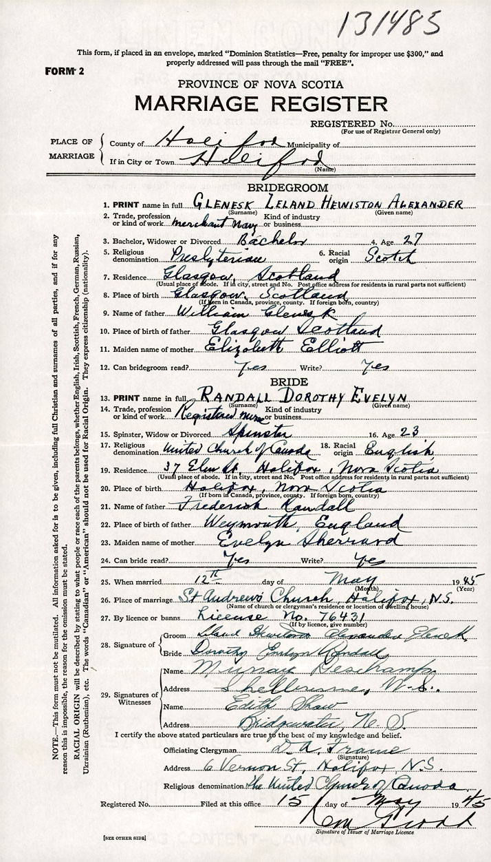 1. PRINT name in full Glenesk, Leland Hewiston Alexander