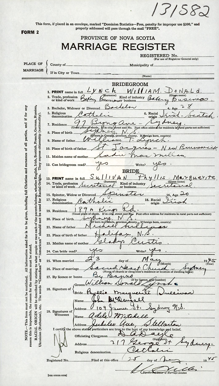 Groom William Donald Lynch