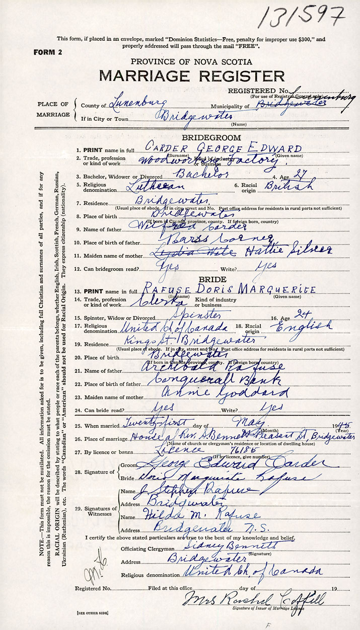 Bride Doris Marguerite Rafuse