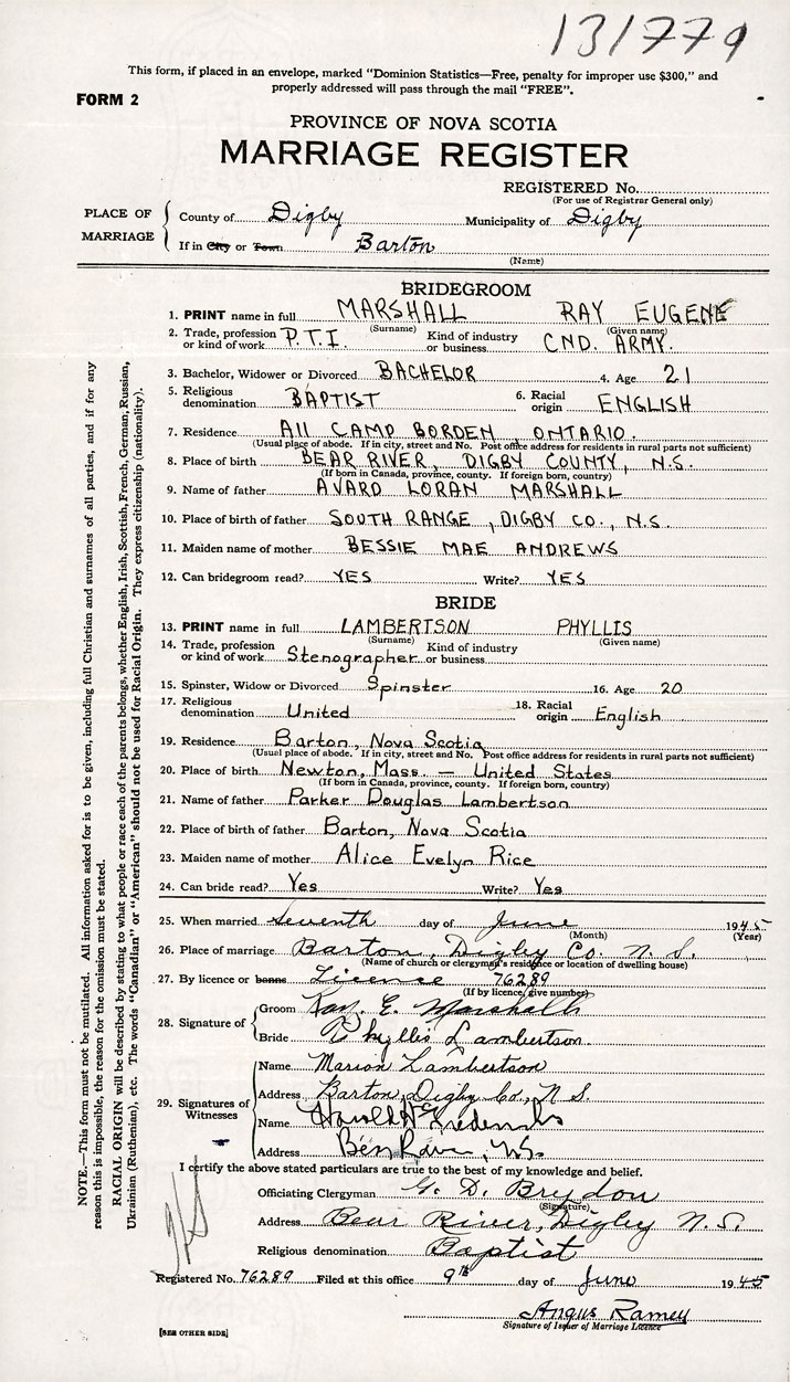 26. Place of marriage Barton, Digby County