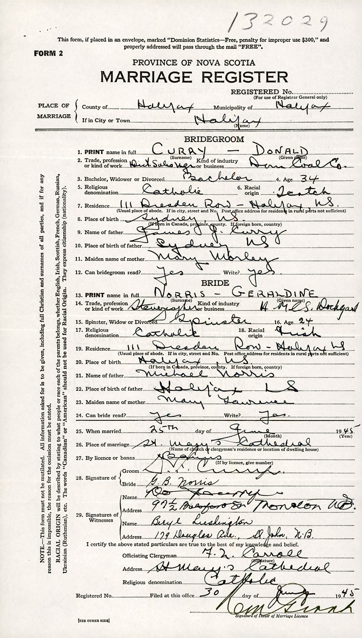 26. Place of marriage St. Mary’s Cathedral Halifax , Halifax County