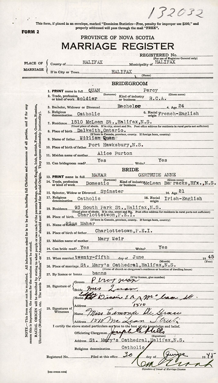 26. Place of marriage St. Mary's Cathedral Halifax, Halifax County