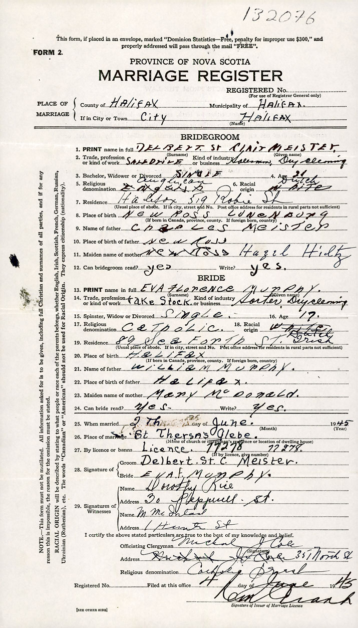 26. Place of marriage St Theresa's Glebe Halifax, Halifax County