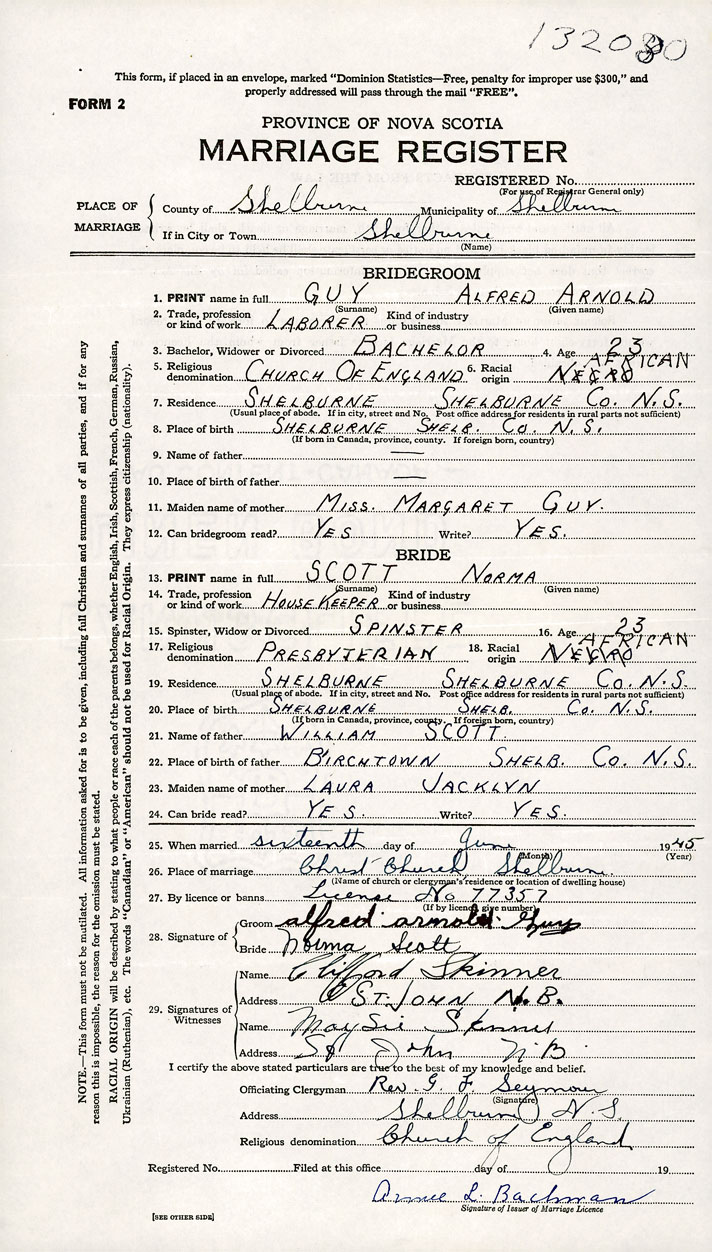 26. Place of marriage Christ Church Shelburne, Shelburne County