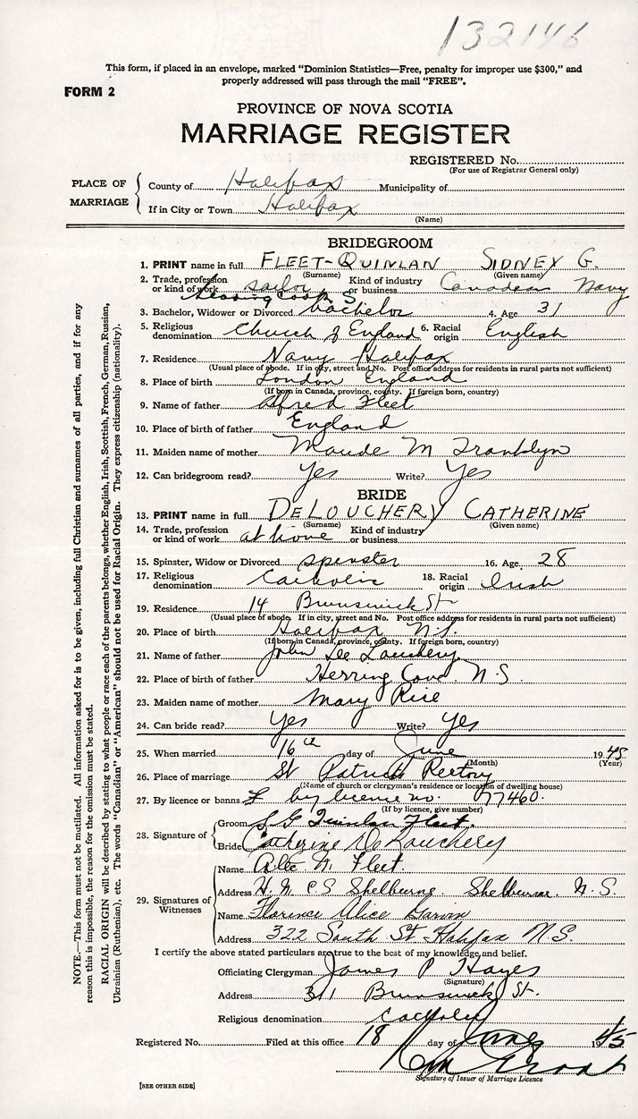 26. Place of marriage St Patrick's Rectory Halifax, Halifax County