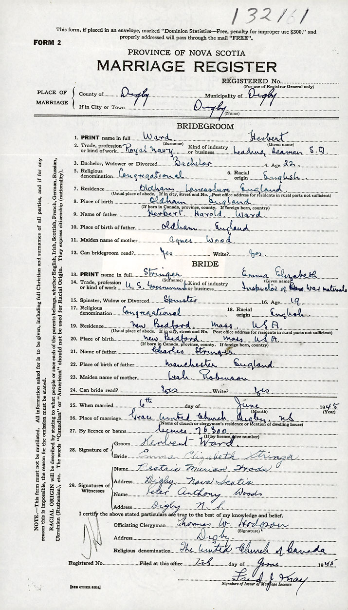 26. Place of marriage Grace United Church Digby, Digby County