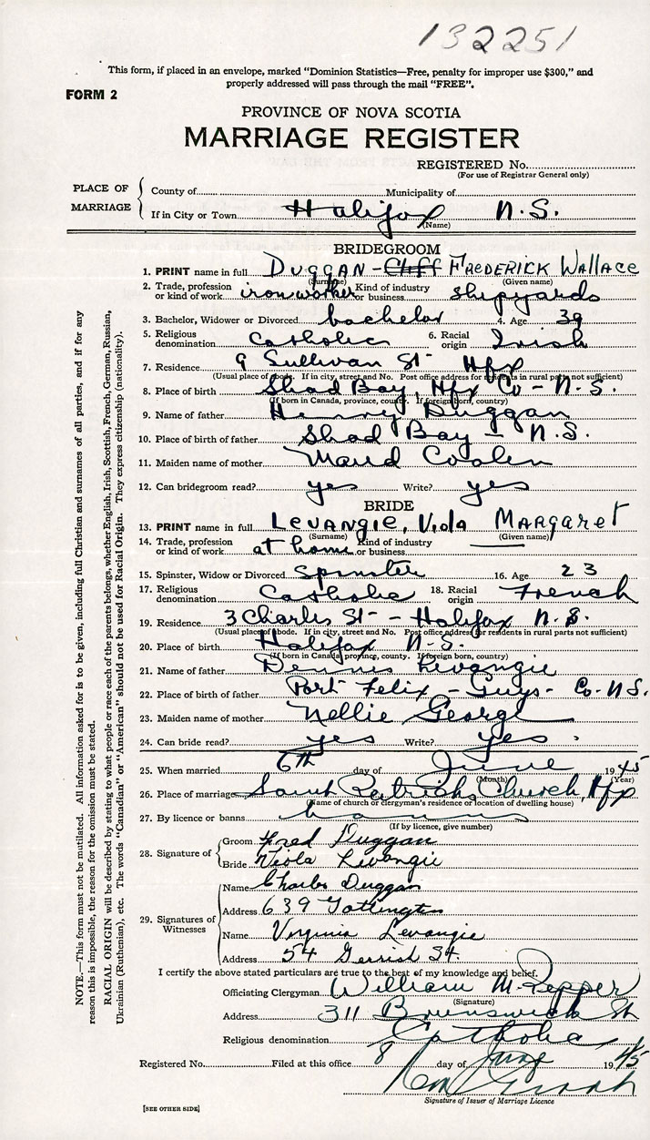 26. Place of marriage Saint Patricks Church Halifax, Halifax County