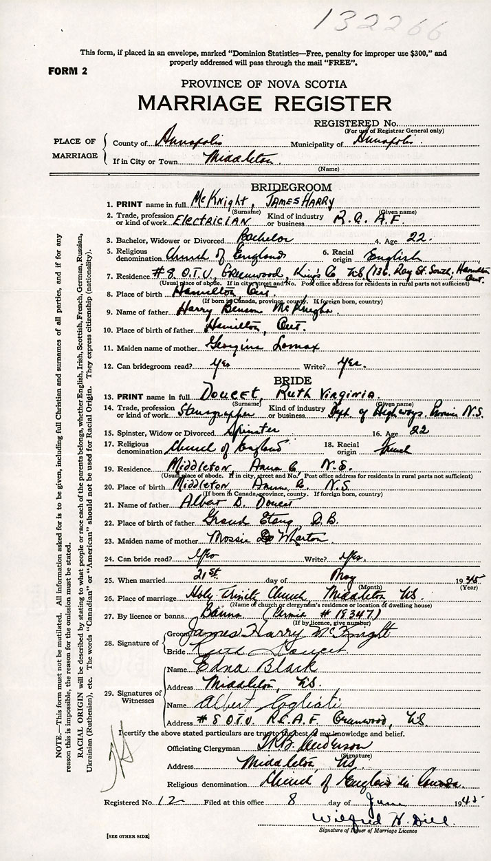 26. Place of marriage Holy Trinity Church Middleton, Annapolis County