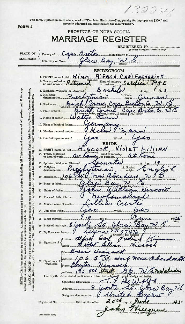 26. Place of marriage 8 York St. Glace Bay, Cape Breton County