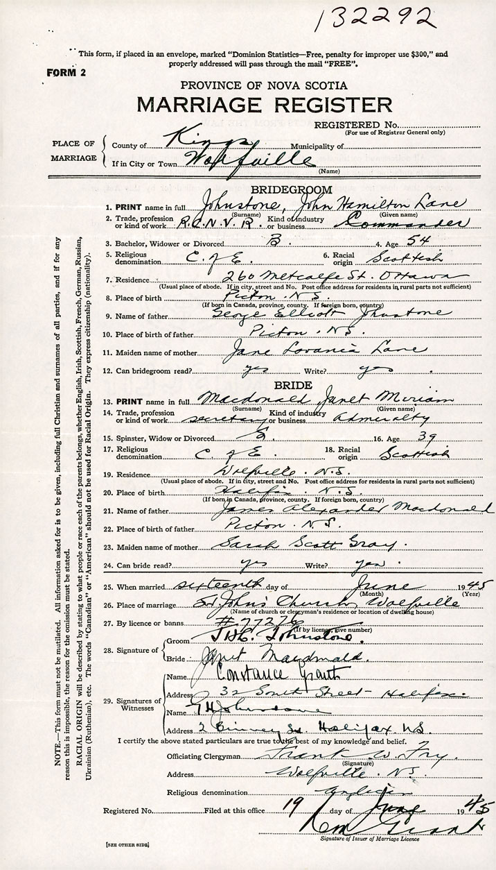 1. PRINT name in full Johnstone, John Hamilton Lane