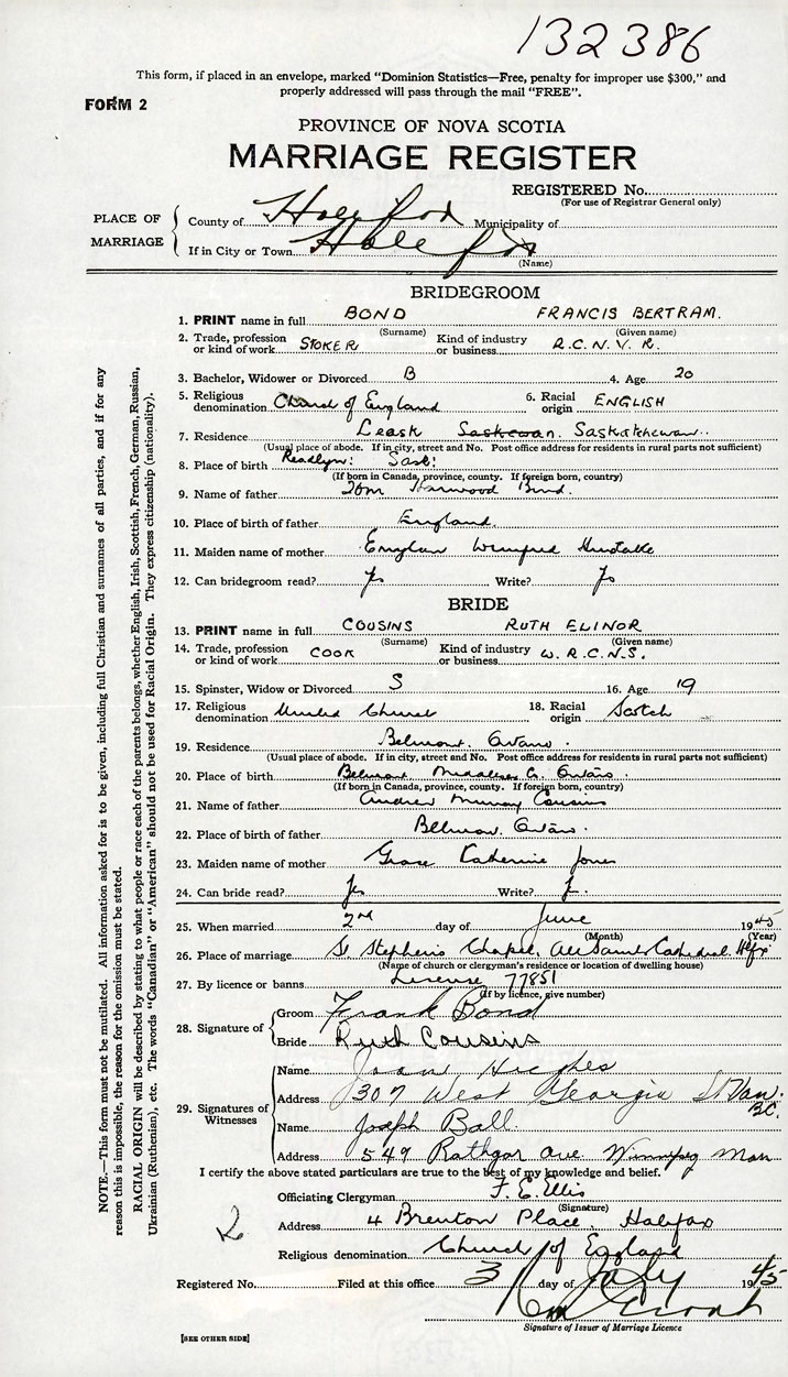 Groom Francis Bertram Bond