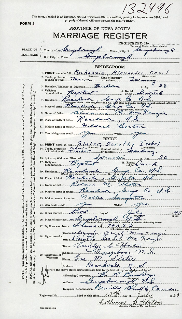 Groom Alexander Cecil McKenzie