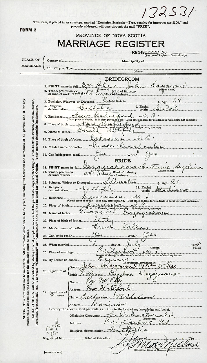 26. Place of marriage Bridgeport, Cape Breton County