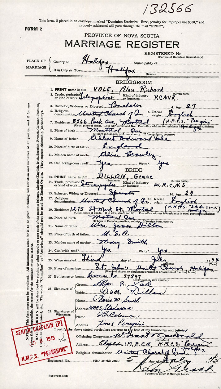 Groom Alan Richard Vale