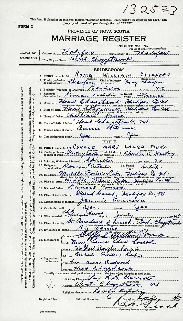 26. Place of marriage St Anselm's Church West Chezzetcook, Halifax County