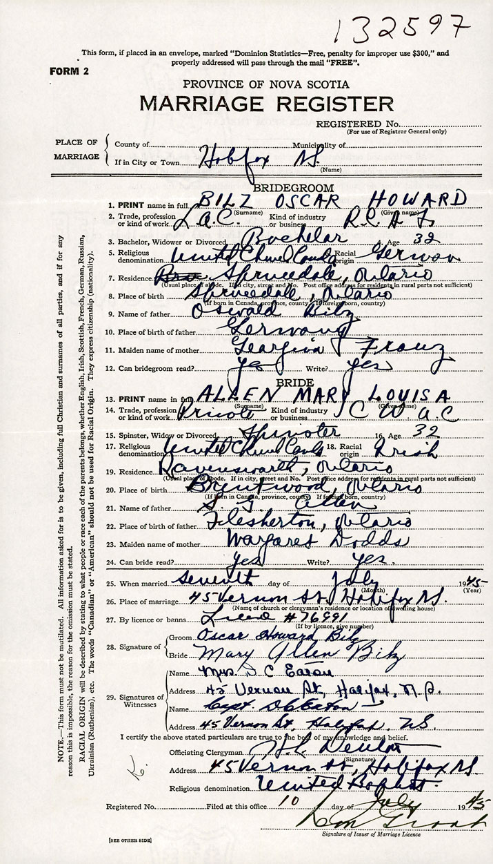26. Place of marriage 45 Vernon St Halifax, Halifax County