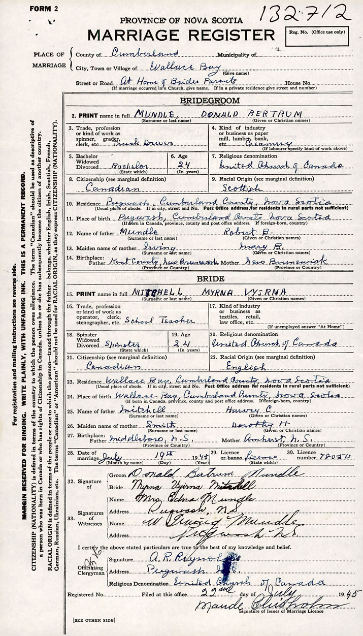 Groom Donald Bertram Mundle