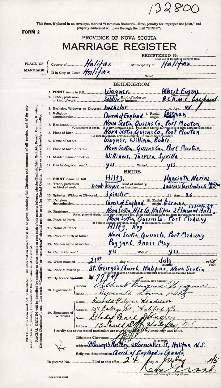 26. Place of marriage St. George Church Halifax N.S., Halifax County