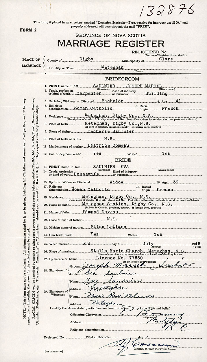 PLACE OF MARRIAGE County of Digby in City or Town Meteghan