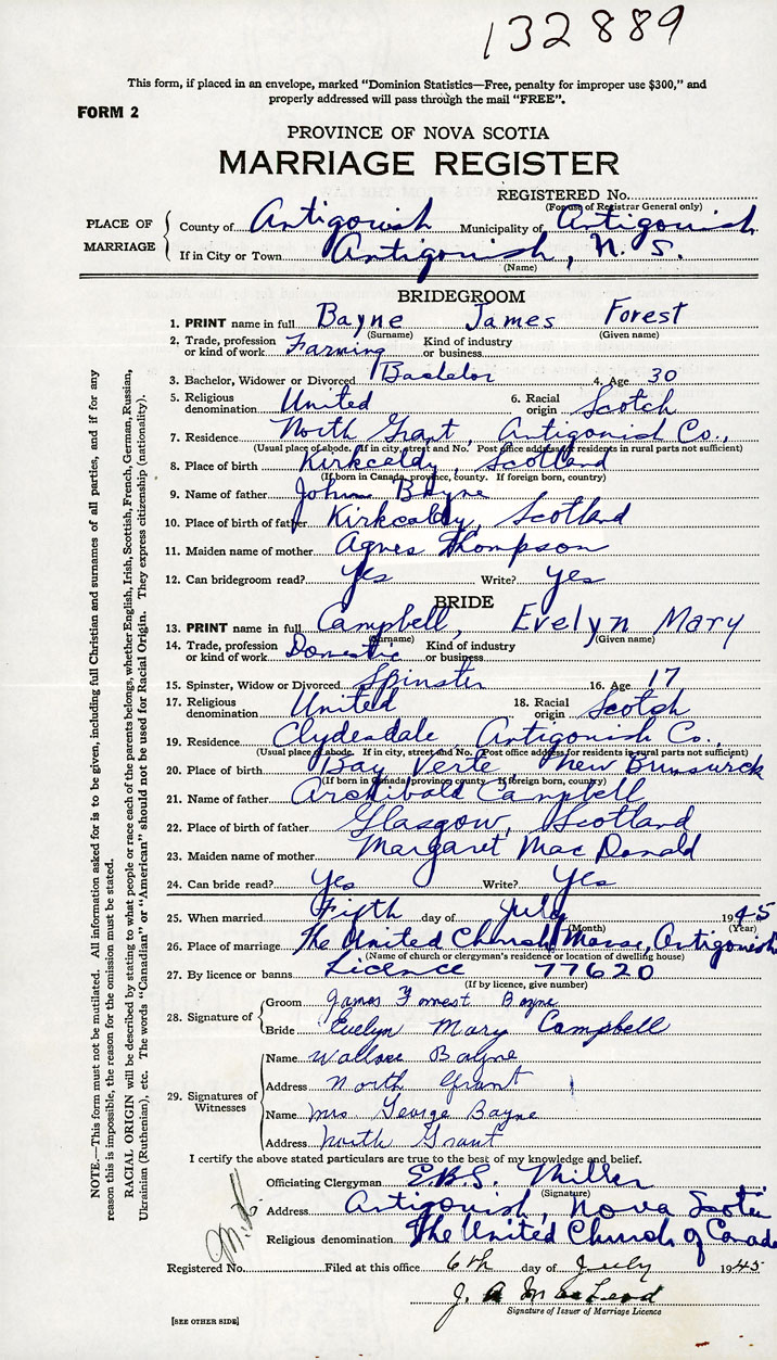 1. PRINT name in full Bayne, James Forest