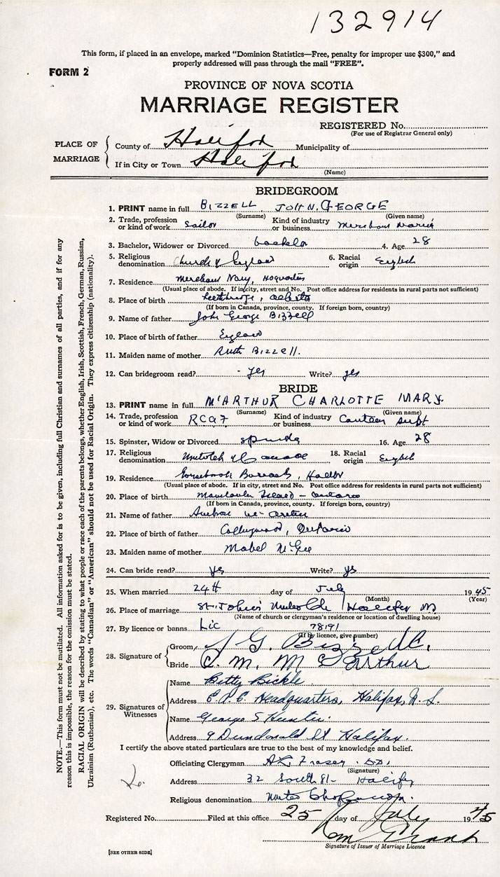 26. Place of marriage St John's United Church Halifax, Halifax County