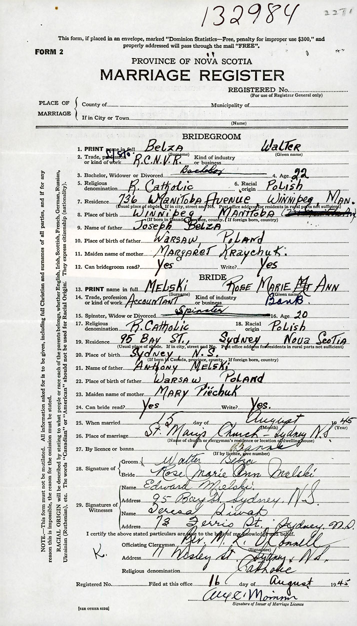 26. Place of marriage St. Mary's Church Sydney, Cape Breton County