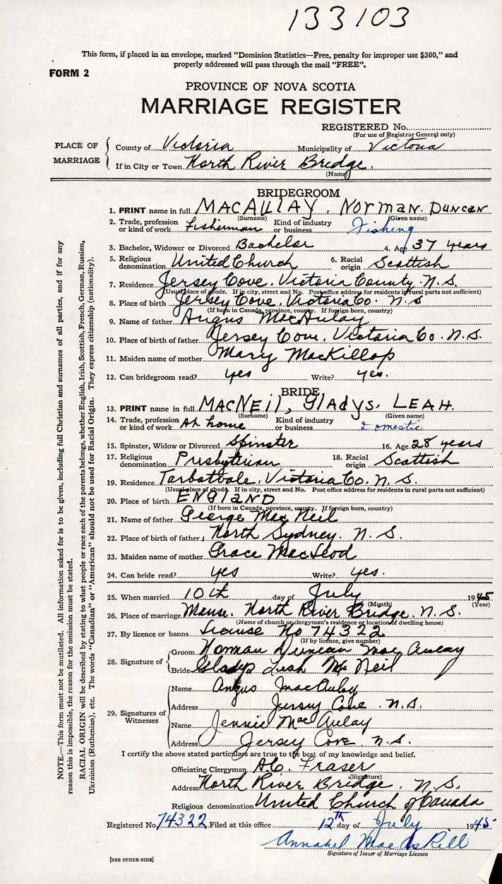 Bride Gladys Leah MacNeil