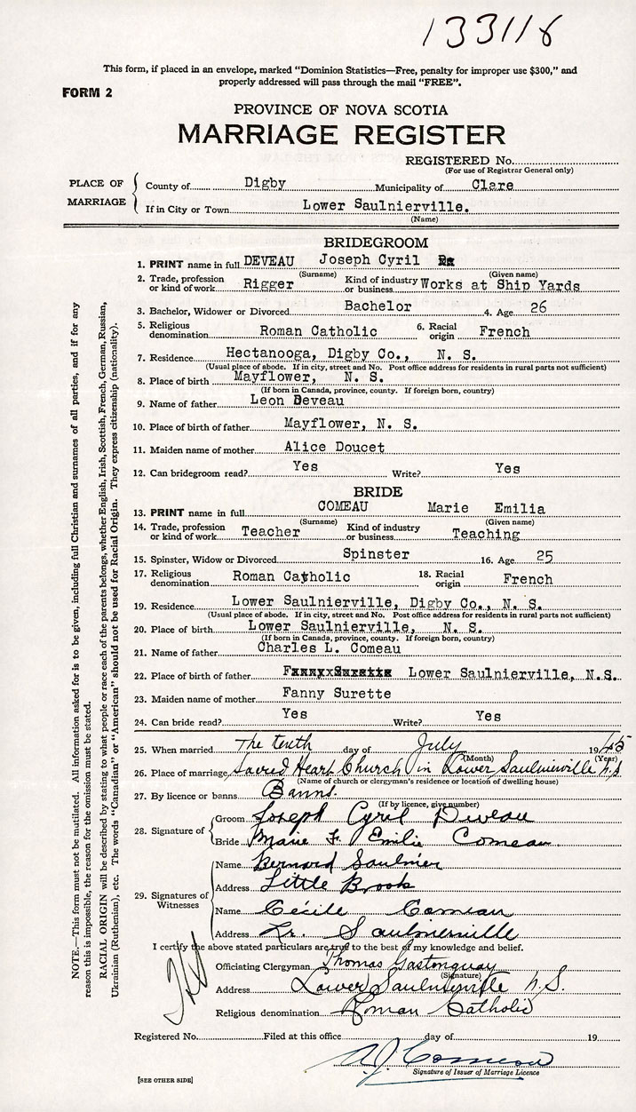 26. Place of marriage Sacred Heart Church Lower Saulnierville, Digby County