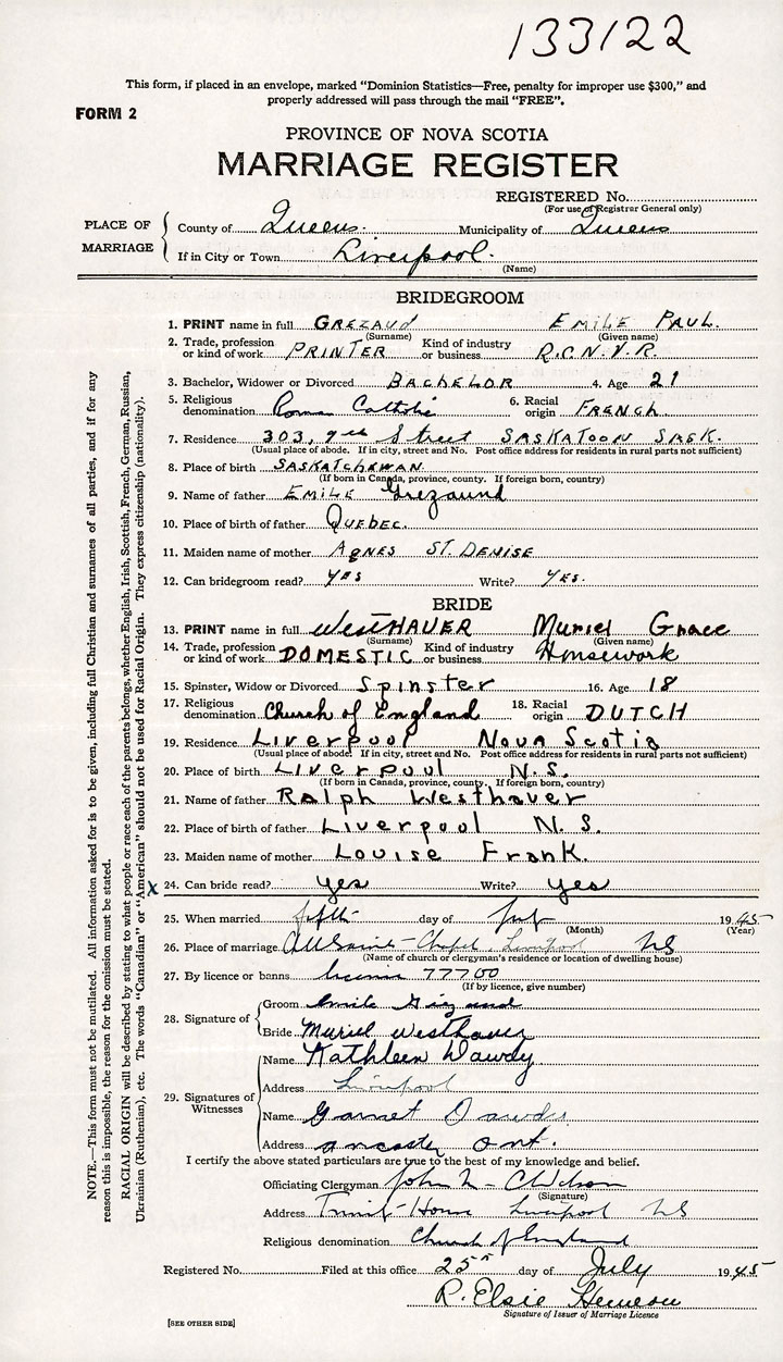25. When married 5 day of July 1945