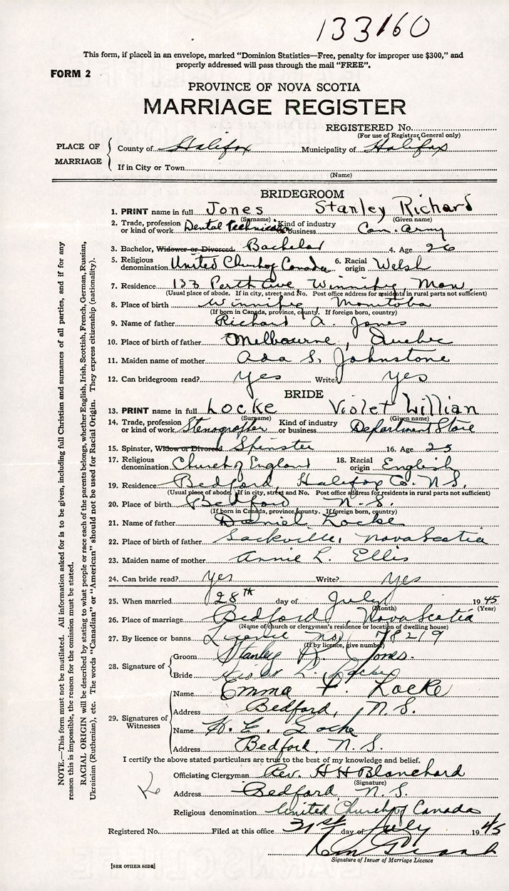 PLACE OF MARRIAGE County of Halifax in City or Town Bedford