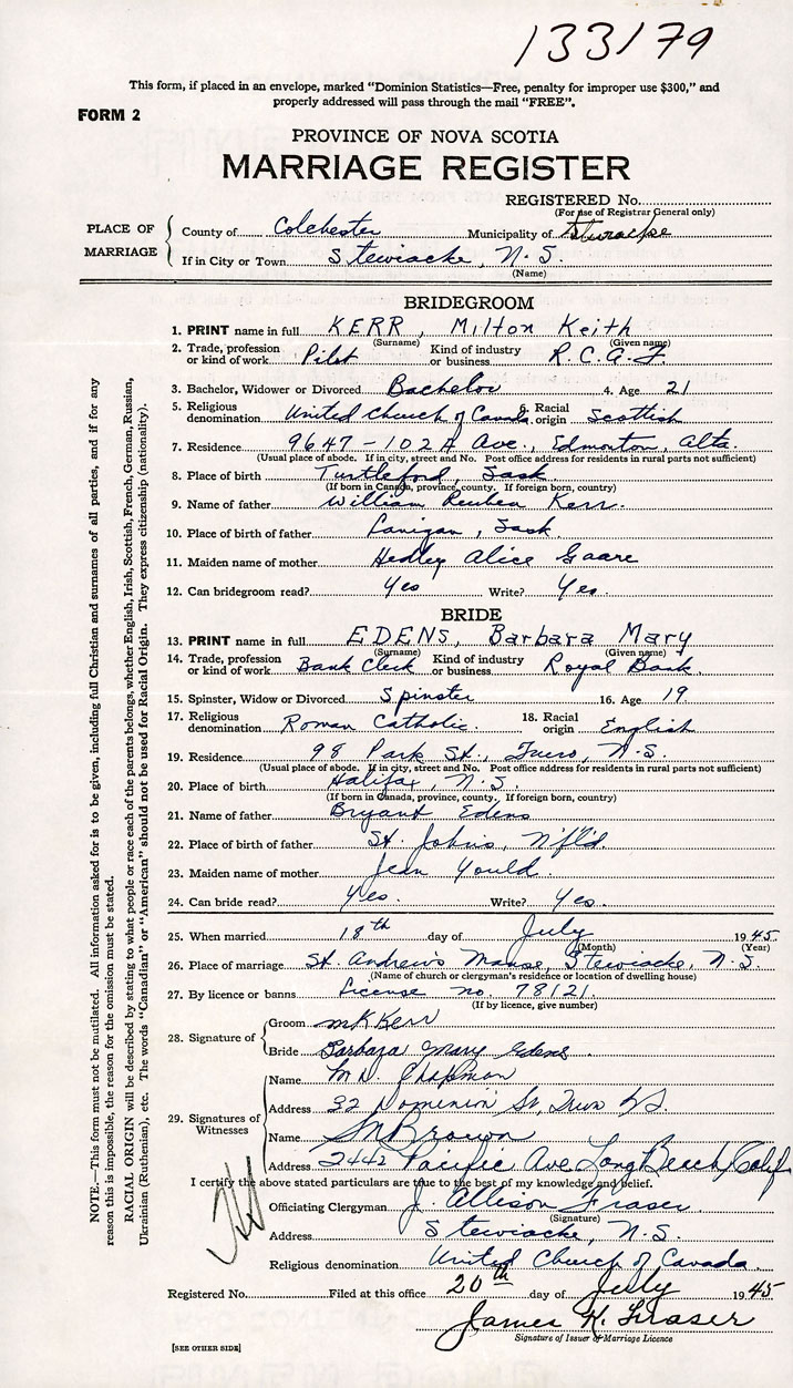Groom Milton Keith Kerr