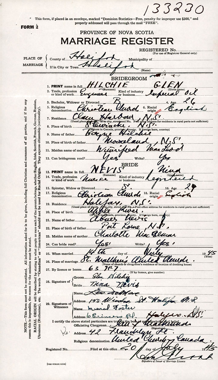 26. Place of marriage St. Matthews United Church Halifax , Halifax County