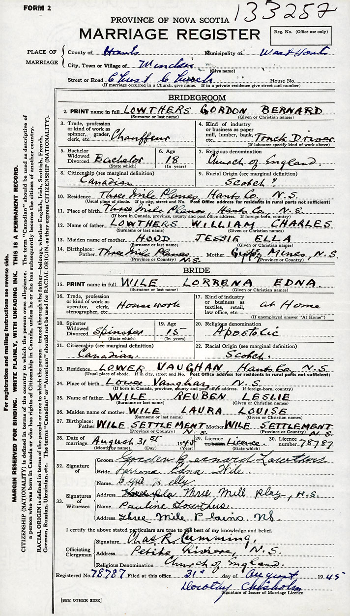 Groom Gordon Bernard Lowthers