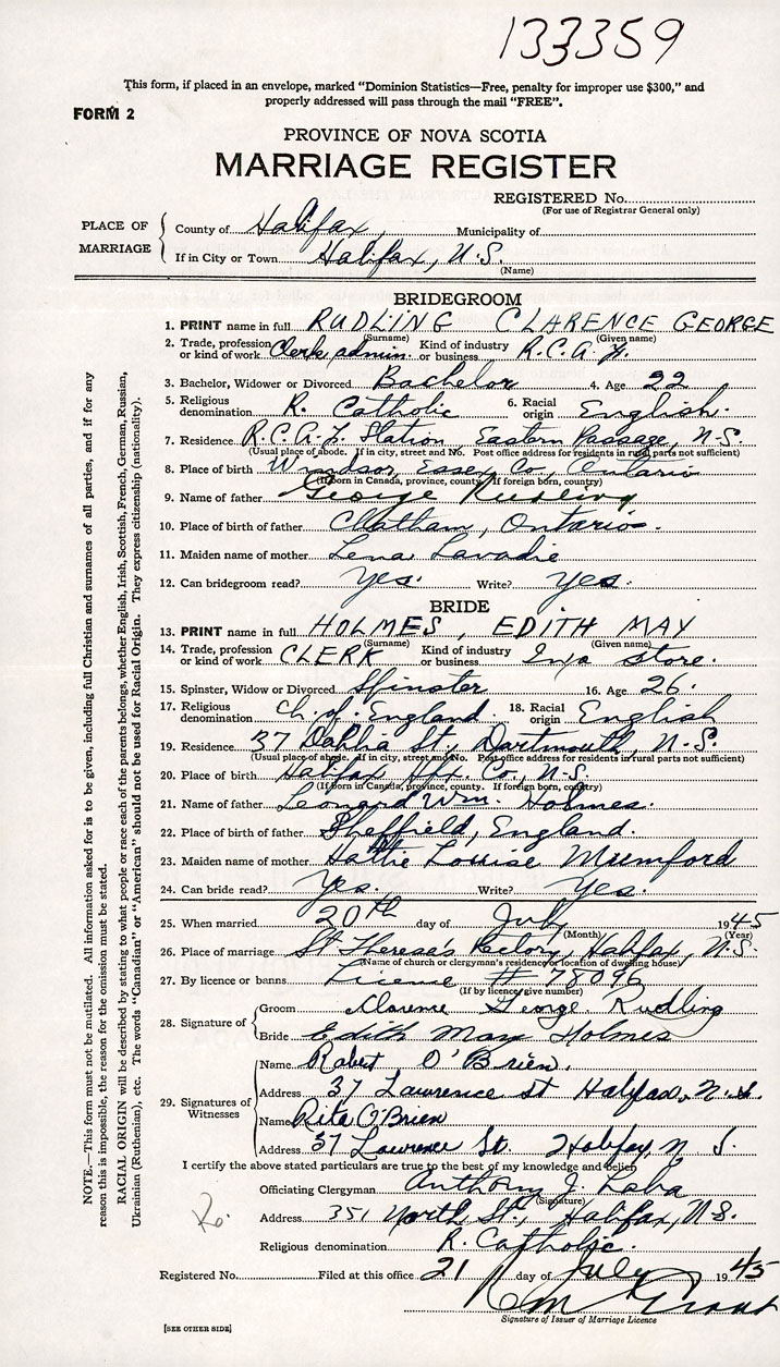 26. Place of marriage St Theresa’s Rectory Halifax , Halifax County