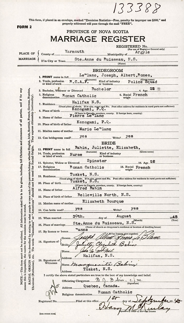 1. PRINT name in full Leblanc, Joseph Albert Romeo