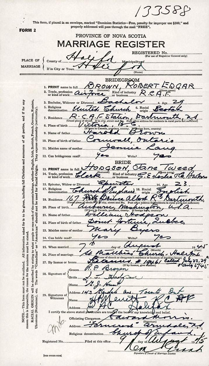 Groom Robert Edgfar Brown