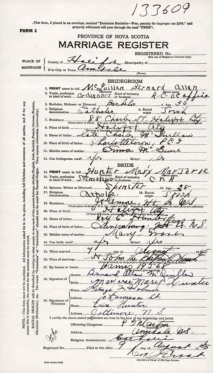 26. Place of marriage St. John the Baptist Church Armdale, Halifax County