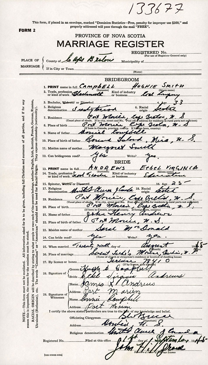 26. Place of marriage Saint Luke's Manse Donkin, Cape Breton County