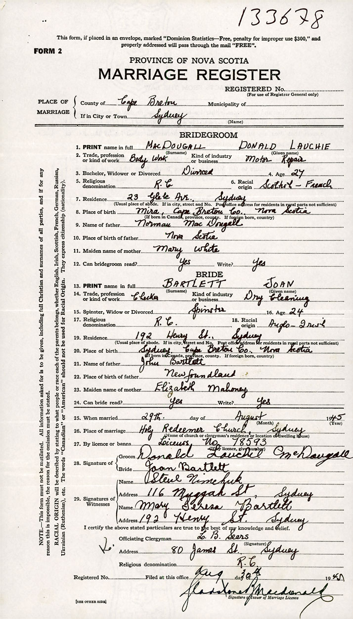 Groom Donald Lauchie MacDougall