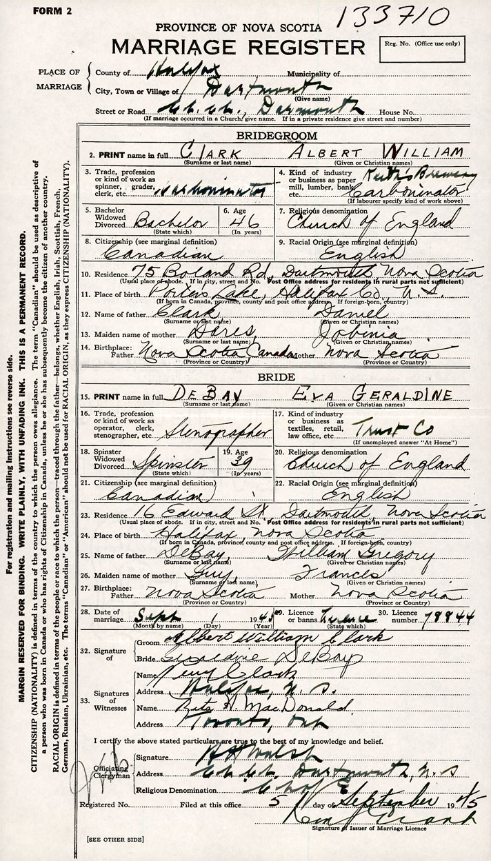 26. Place of marriage Dartmouth , Halifax County