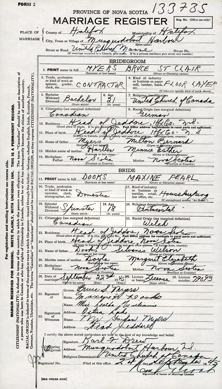 26. Place of marriage United Church of Canada Musquodoboit, Halifax County