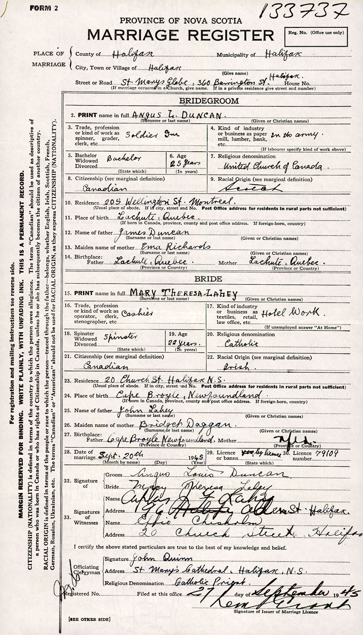 26. Place of marriage 360 Barrington St Halifax , Halifax County