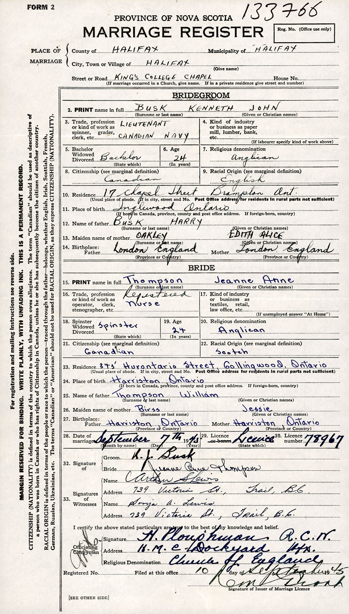 1. PRINT name in full Busk, Kenneth John