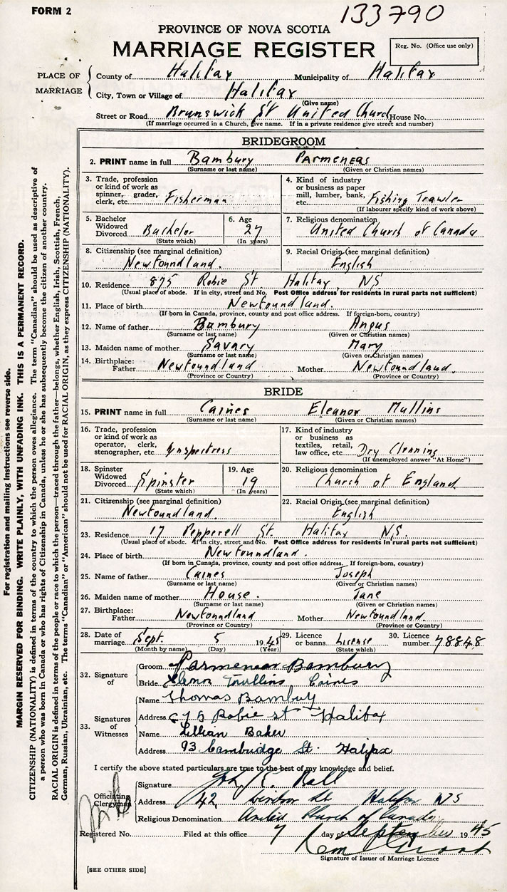 26. Place of marriage Brunswick Street United Church Halifax, Halifax County